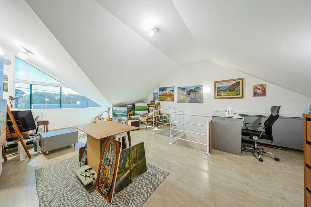 No segundo piso, medindo 40,08 m², um ático espaçoso e versátil, perfeito para ser usado como sala de estar íntima, home office, espaço de lazer, ou o que sua imaginação permitir.
